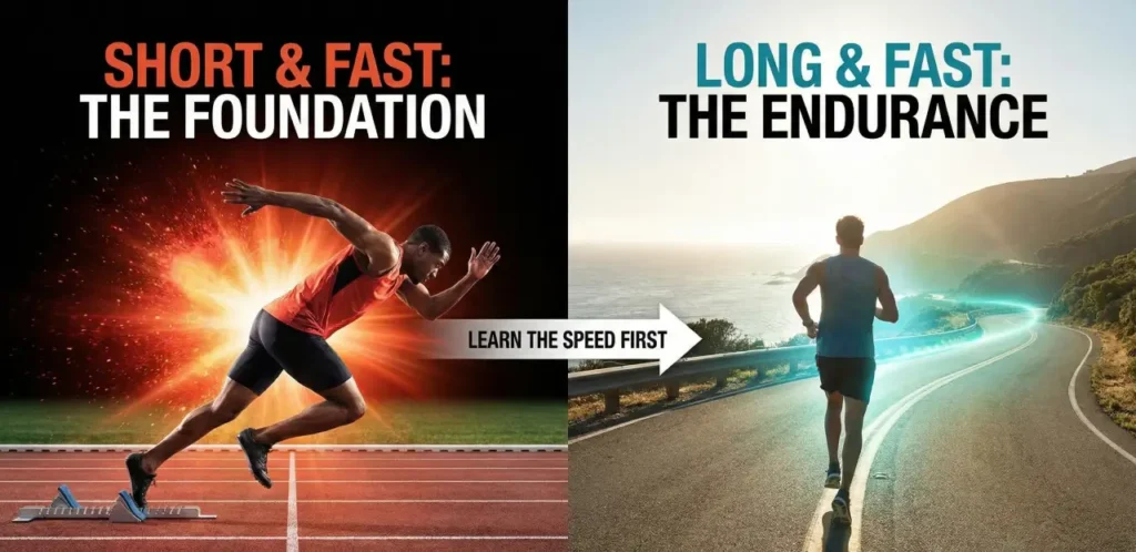 Tony Holler‘s “Feed the Cats” philosophy, while often associated with sprinters, offers a vital lesson for distance coaches: speed is a skill. For the freshman project, emphasize neuromuscular development before aerobic volume. By prioritizing speed and form (neuromuscular) before distance (metabolic), you are effectively “building the chassis” before putting a bigger engine in the car.