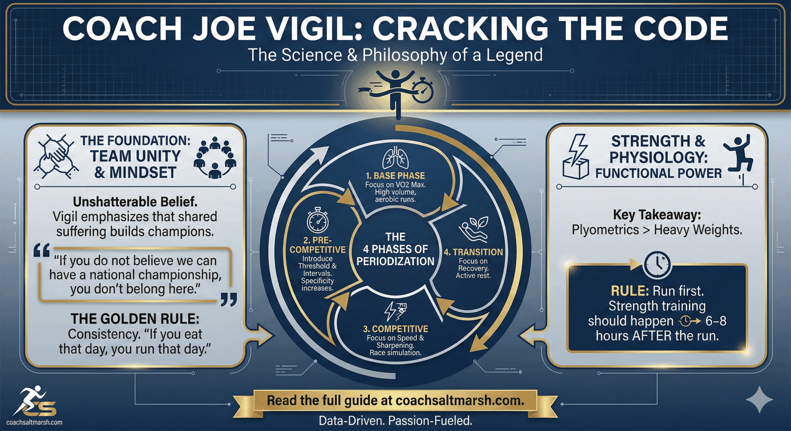 The philosophy of Joe Vigil is a symphony of iron-clad discipline, team unity, unwavering training consistency, masterful training periodization, meticulously tuned energy systems, and a foundation of high mileage, all orchestrated to create distance running champions.
